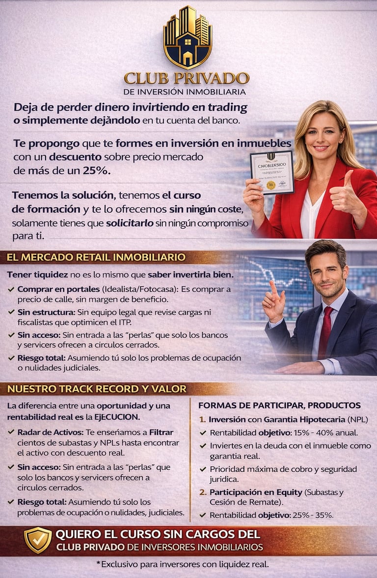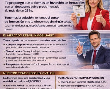 Nuestro objetivo es democratizar el acceso al conocimiento de la Inversión Inmobiliaria Judicial. A través de nuestra formación técnica y análisis de casos reales, trasladamos a nuestra comunidad de alumnos la capacidad de identificar oportunidades con márgenes que no existen en el mercado tradicional.