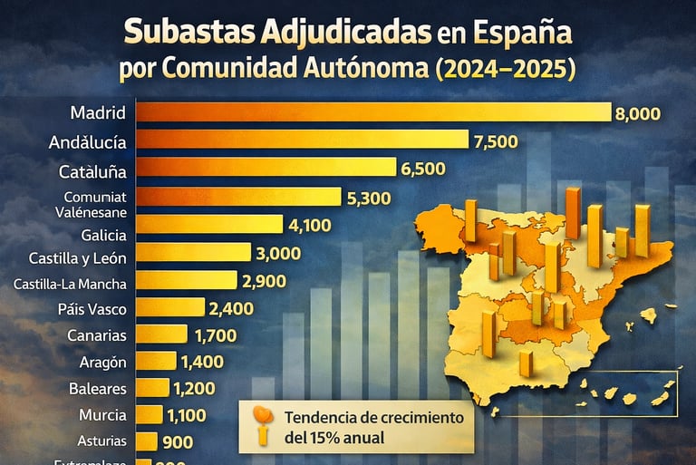 Dato Clave: Aproximadamente el 15% de las subastas anuales se concentran en las provincias de Madrid, Barcelona, Valencia y Málaga, las zonas de mayor liquidez del mercado.